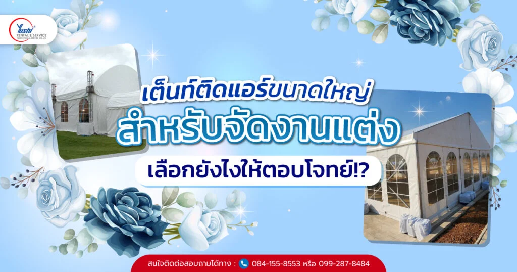 แต่คุณสามารถป้องกันปัญหาเหล่านี้ได้ เพียงแค่เลือกใช้บริการเช่าเต็นท์ติดแอร์ สำหรับใครที่กำลังมองหาตัวช่วยดีๆ อย่าง บริการเช่าเต็นท์ติดแอร์ และอุปกรณ์เสริม ในบทความนี้ Yushi Rental จะมาแนะนำ เต็นท์ติดแอร์ ขนาดใหญ่ สำหรับจัดงานแต่ง พร้อมแนะนำบริการเช่าอุปกรณ์เสริมจากทาง Yushi Rental