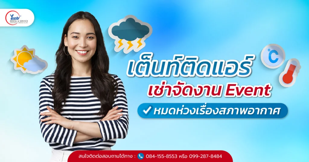 หากใครที่กำลังจะวางแผนจัดงาน Event ในช่วงนี้ หมดห่วงเรื่องสภาพอากาศไปได้เลย เพราะไม่ว่าอากาศจะร้อน อบอ้าว หรือฝนตกก็ไม่หวั่น ด้วยบริการ เช่าเต็นท์ติดแอร์ จาก Yushi Rental มีเต็นท์ติดแอร์ให้เลือกหลายรูปแบบ หลายขนาด นอกจากนี้ยังมีบริการอุปกรณ์เสริมอีกมากมาย เพราะเราคือ ผู้ให้บริการด้านงานเช่า และรับจัดงานอีเว้นท์หลากหลายรูปแบบ ถ้าลูกค้าที่เลือกเช่าเต็นท์ติดแอร์กับเรา คุณจะได้รับบริการตั้งแต่