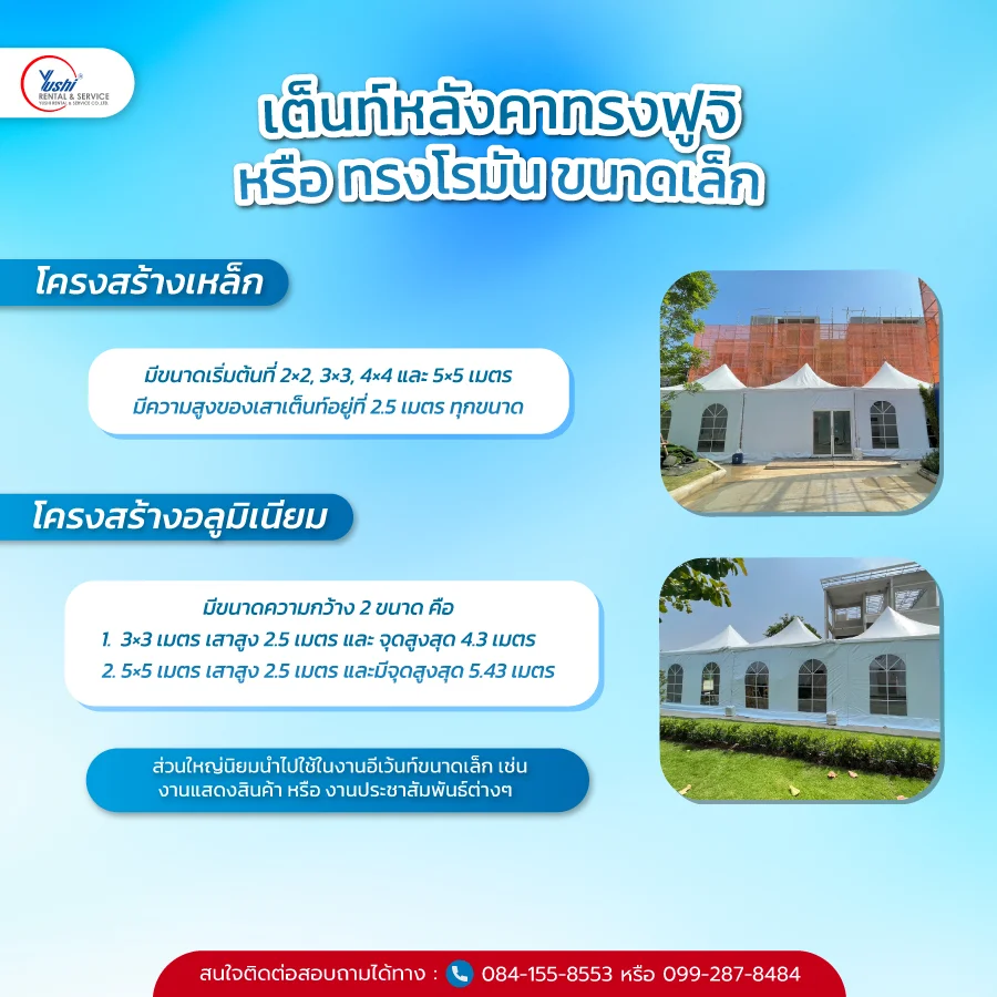 เต็นท์หลังคาทรงฟูจิ หรือ ทรงโรมัน ขนาดเล็ก