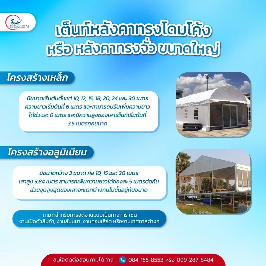เต็นท์หลังคาทรงโดมโค้ง หรือ หลังคาทรงจั่ว ขนาดใหญ่