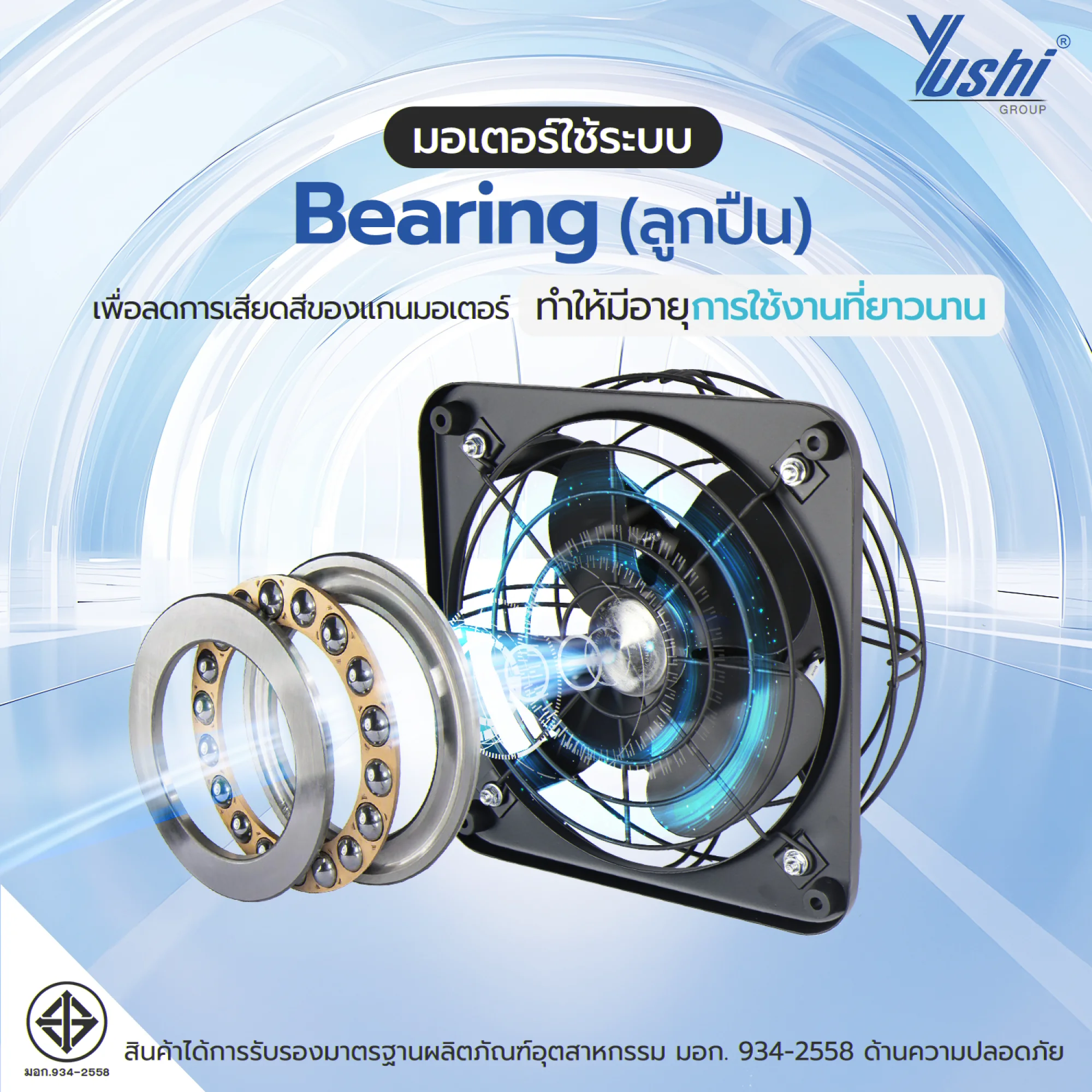 มอเตอร์ใช้ระบบ Bearing (ลูกปืน) เพื่อลดการเสียดสีของแกนมอเตอร์ ทำให้มีอายุการใช้งานที่ยาวนานและสามารถลดความร้อนที่เกิดขึ้นจากแกนมอเตอร์กับมอเตอร์ได้