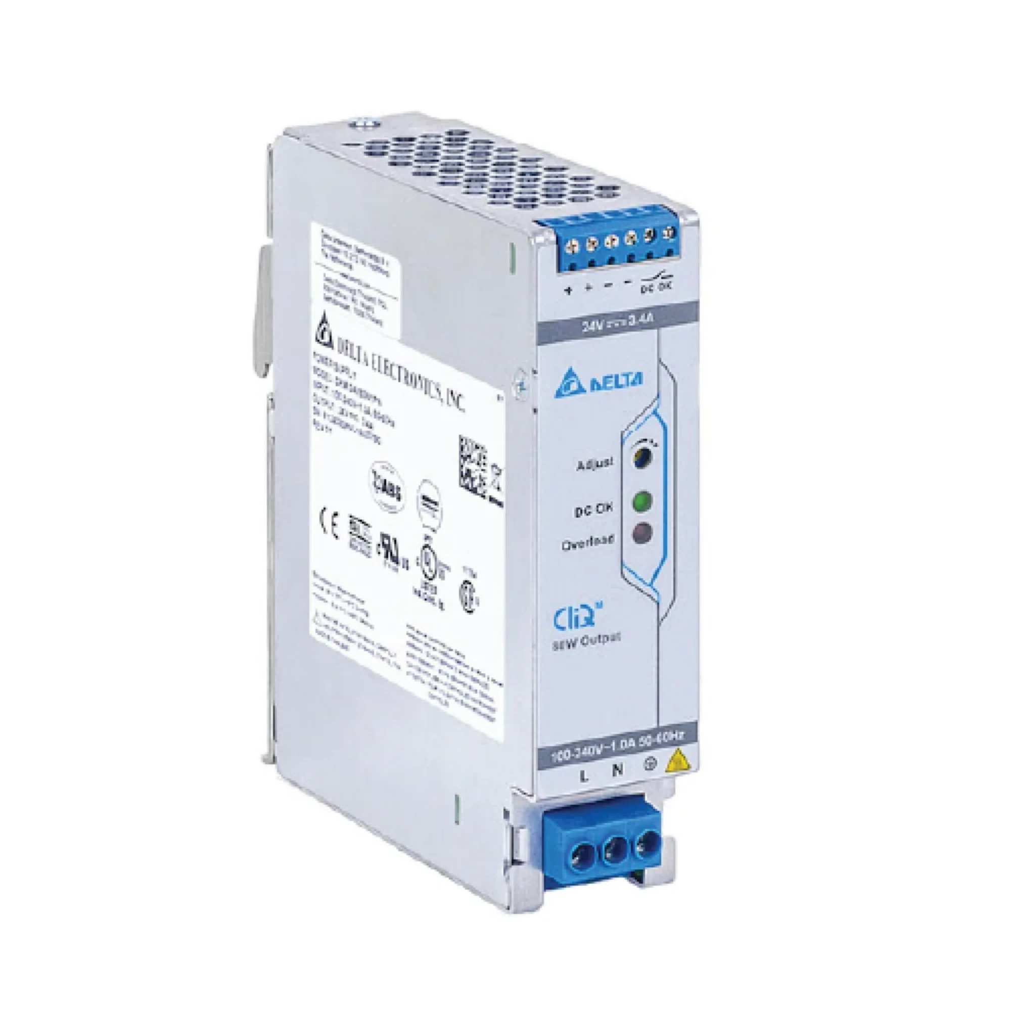 แหล่งจ่ายไฟแบบอุตสาหกรรมประเภท DIN rail ที่บางที่สุดในกลุ่มเดียวกันคือซีรีส์แหล่งจ่ายไฟประเภท CliQ M DIN rail ซึ่งได้รับการออกแบบตามมาตรฐานความปลอดภัยทางอุตสาหกรรมและทางทะเล (Lloyd's Register) • การออกแบบเพรียวบาง • เพิ่มพลังงานได้